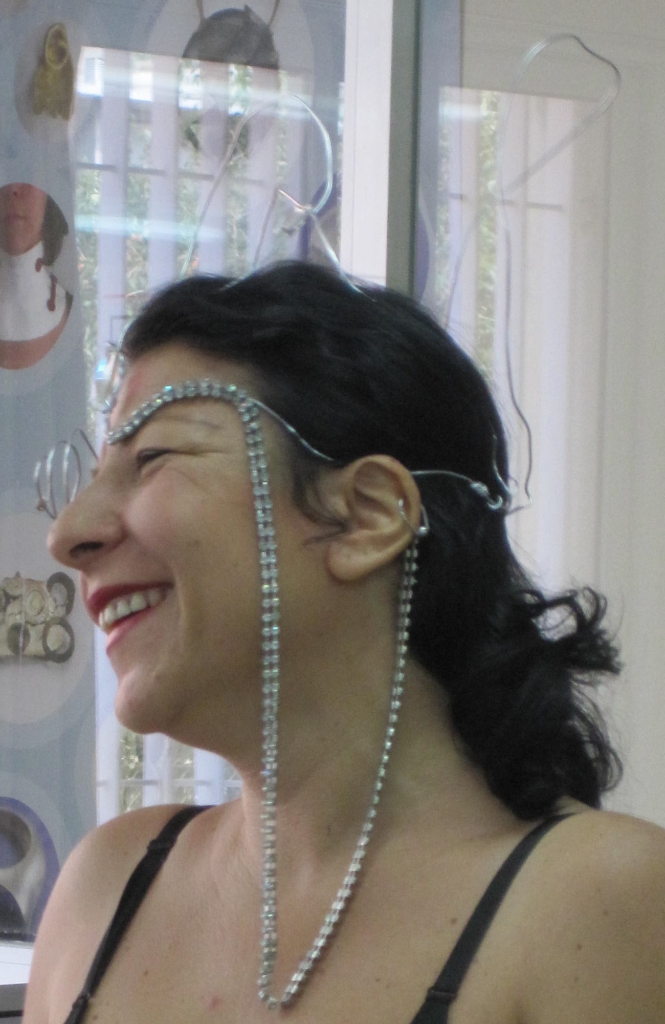 para ser más interactiva. Destacan en particular la extensión tridimensional del ojo y la ceja para resaltar el ojo opuesto. El efecto es glamuroso y extravagante. Se podrían hacer variantes personalizadas a medida siempre teniendo en cuenta el destinatario y su personalidad y características físicas.